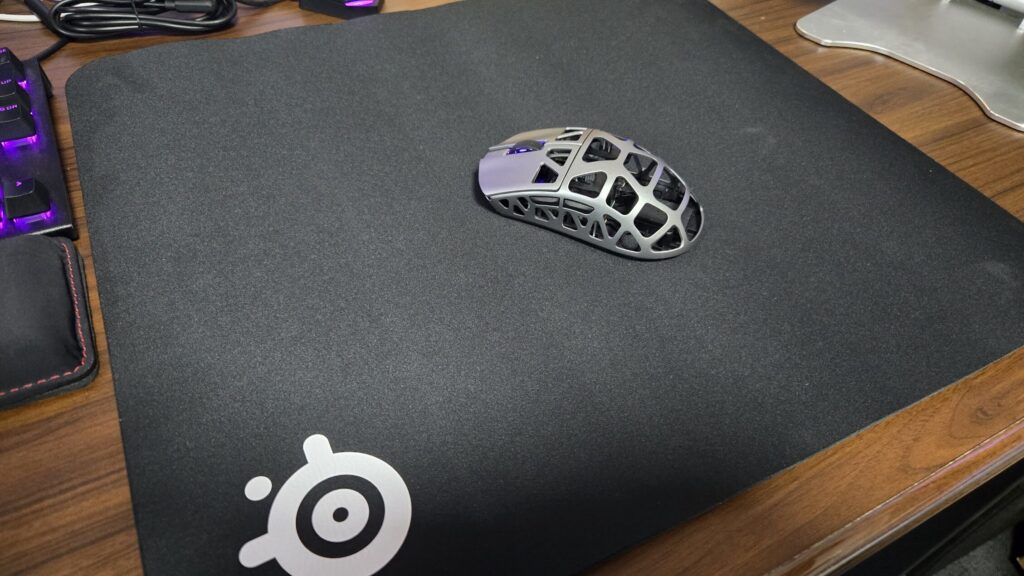 60%キーボードに変えると、キーボードの右側が大きく空き、マウスを広く振れるローセンシ環境を作りやすくなります。