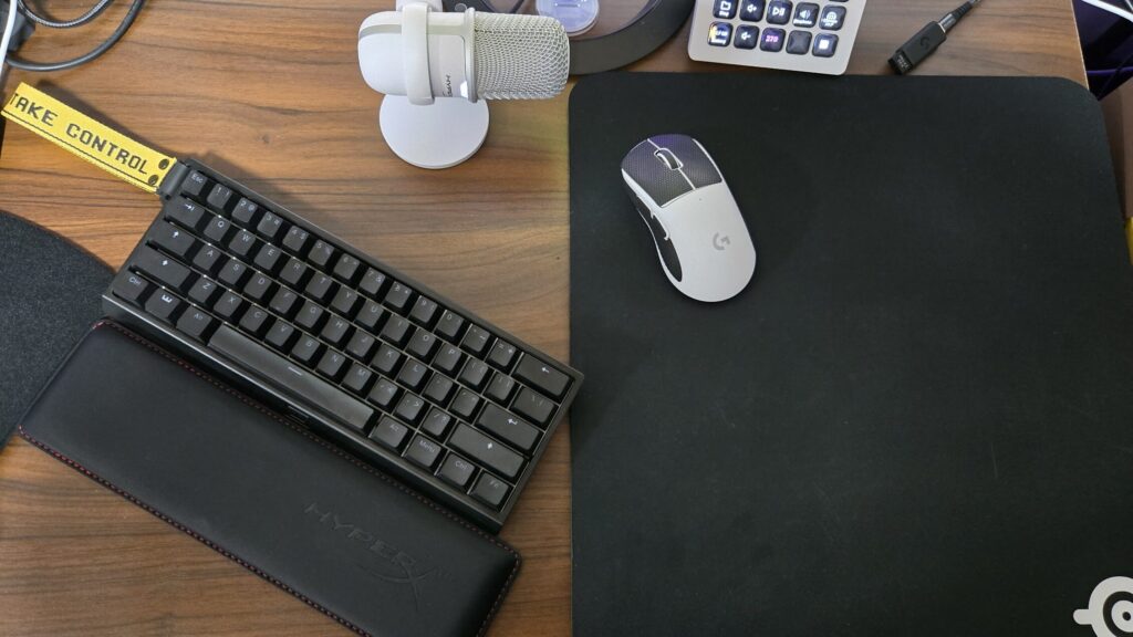 60%レイアウトに慣れてしまえば、机の上が広く使えるため、マウスパッドの端までフリックするプレイスタイルでもストレスを感じにくくなります。