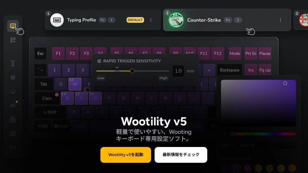 WootilityはWebベースの設定ソフトのため、PCインストール不要です。(なおインストール版も用意されています)